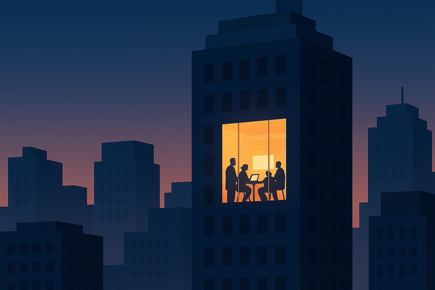 The office smells of burnt coffee and victory.